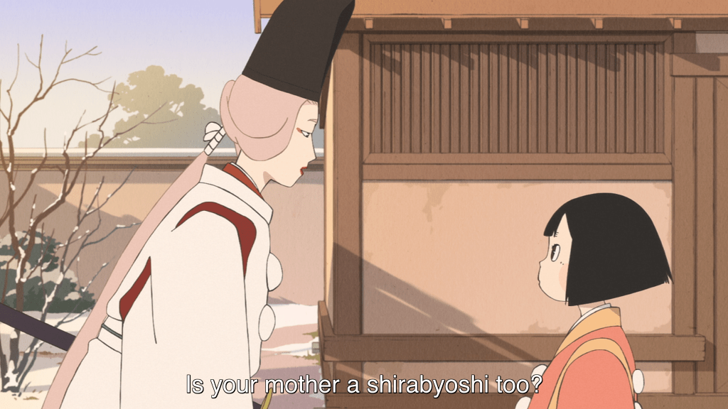 This begins to change when she meets Gio, a shirabyoshi dancer like Biwa’s mother, who disappeared when Biwa was too young even to walk or learn her own name. As the girl shares a delightful tea with the dancer and Tokuko, she learns the phrases “one day,” and “next time”—concepts that evoke a vision of the future she’s never encountered before, namely, a future that could hold something pleasant, something to look forward to. One day, the next time she sees Gio, they will chat again about the life of a shirabyoshi and share tasty treats and tidbits of rumor about what happened to Biwa’s mother, whether she might still be alive somewhere. Biwa’s vision of what the future can entail begins to shift, ever so slightly.