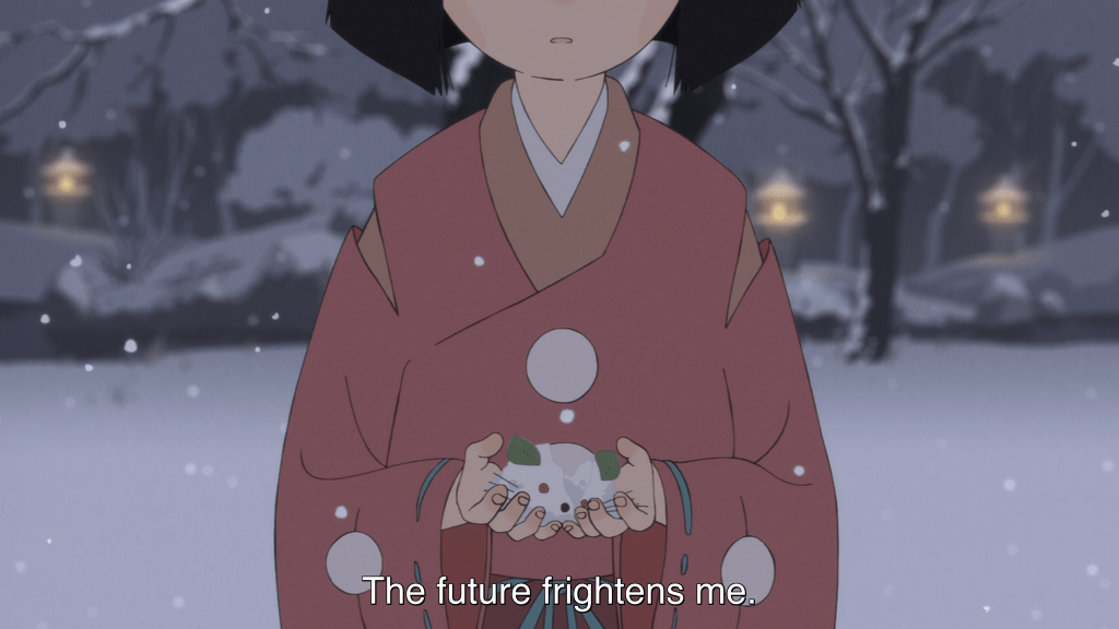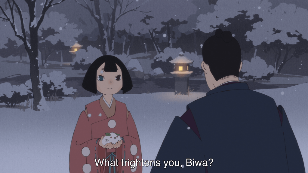 Biwa, the young protagonist of The Heike Story, is afraid of the future. One quiet winter’s night, as the soft flakes of snow gentle their way down from unseen clouds above, Shigemori asks her about it. About what frightens her. And she tells him, the childish smile over the snow bunny in her hands fading. The bunny crumbles as her hands stiffen.