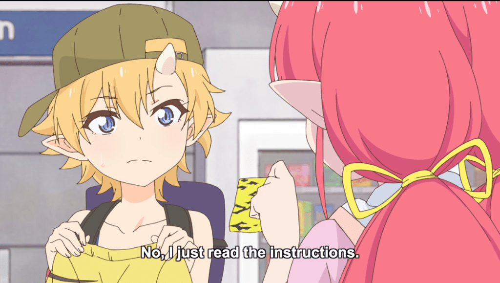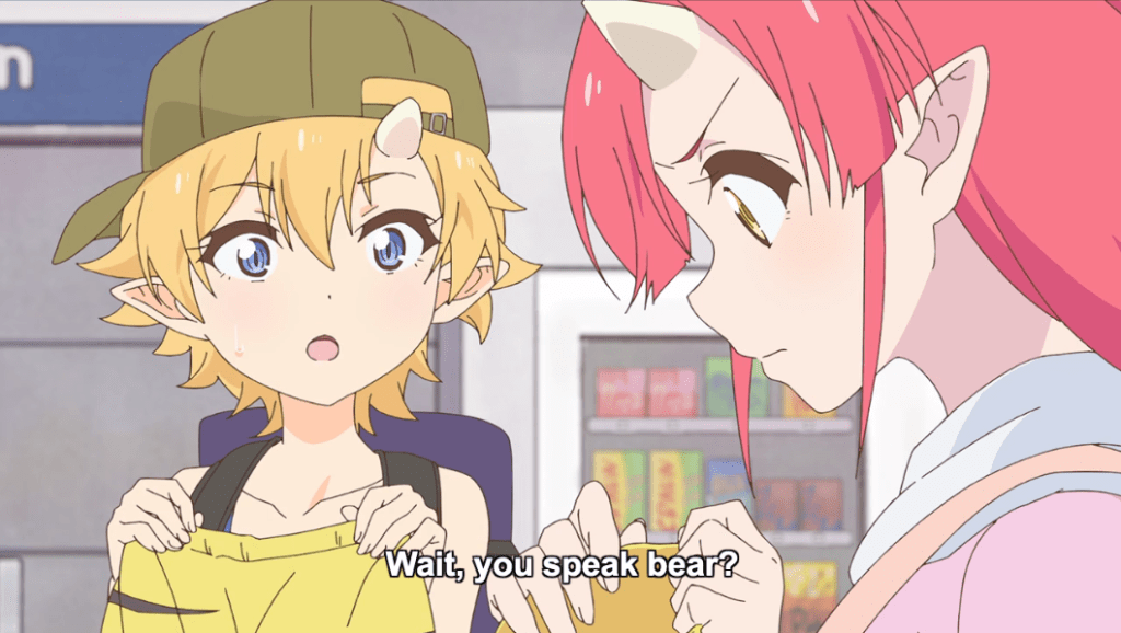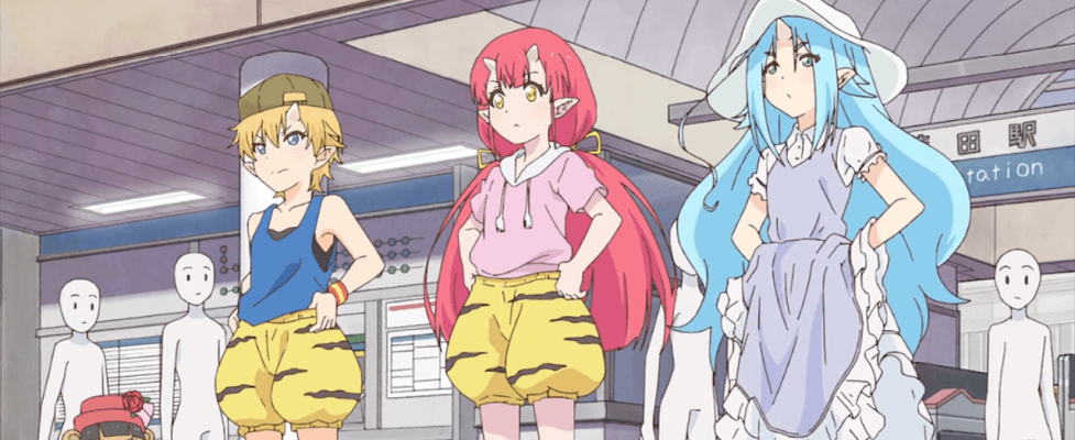 Three typical slice-of-life girls arrive in the big city. There’s Himawari, the confident blond sporty one, Tsuyukusa, the sleepy-eyed, dessert-loving blue-haired one, and Tsutsuji, the reddish-pink haired one who is so normal she’s special, as befitting an MC. Only, what’s that beneath their hats? Horns?! Oh yeah, they’re oni or the demon-monsters of Japanese folk lore, and they’re on a mission from the oni king himself to dispel the bad rap against oni that persists among humans. Things like the stereotype that oni enjoy nothing more than eating humans. You know, just little stuff. Anyhow, our MC is quite worried about being around so many humans, as she fears that they will be afraid of her, even though oni are now somewhat integrated into human society. Enter cute little girl who is indeed afraid of her. Can Tsutsuji and her friends dispel the little girl’s fears and win her over? To help them on their quest is a small mascot pirate bear who provides them with large tiger-striped boxers that possess the magical ability to transform them into anything they choose. Only, that’s all they do: no powers or abilities come with the transformation; it’s just a costume change. Let the cosplay extravaganza begin!
