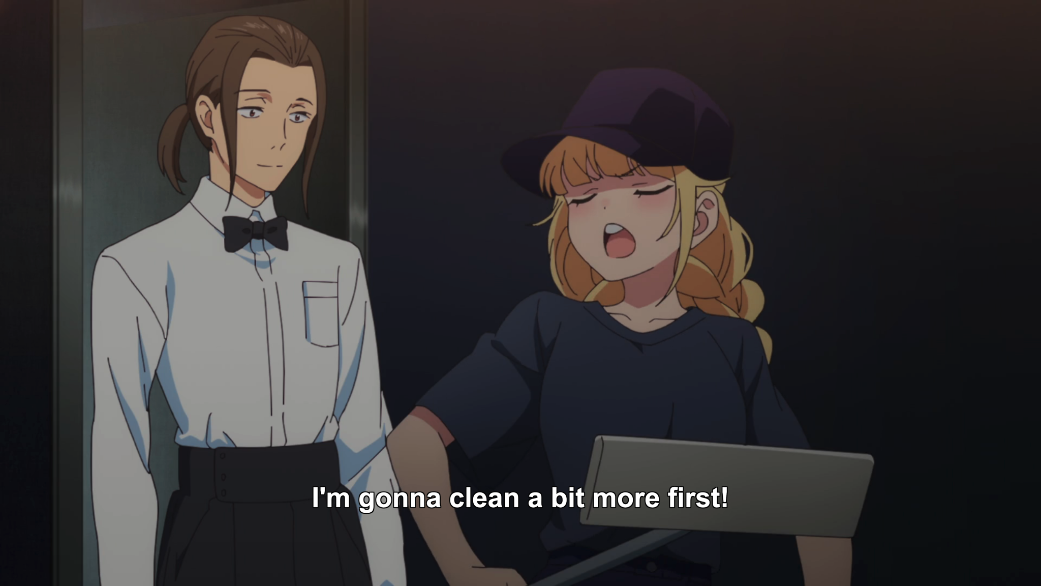 Eiko is left hanging. Alone and feeling neglected, she angry-cleans (mood).