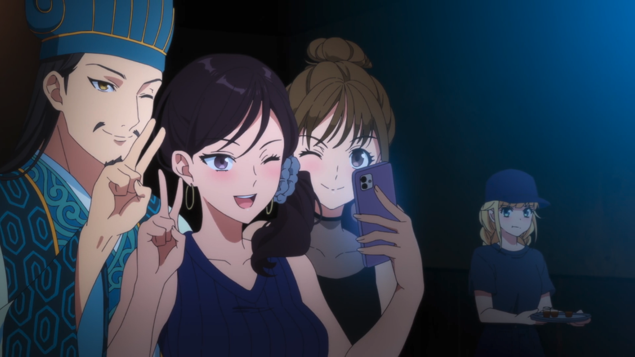 But later that night, once her walls are down, she finally sees it: Kongming has been networking on her behalf. He’s been building the kinds of connections she is going to need to take her record of likes from 1,400 to 100,000, and because it’s Kongming we’re talking about, probably all the way to 500,000! Every conversation he’s had, every selfie he’s taken with someone—it’s all been with Eiko in mind.