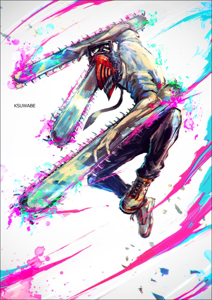 The Chainsaw Man anime is headed our way sometime soon, but in the meantime, enjoy this lovely and colorful piece of the titular character himself, with pastels replacing the often bloody and gory imagery of the series, and by one of the top anime-style artists out there, K-SUWABE.