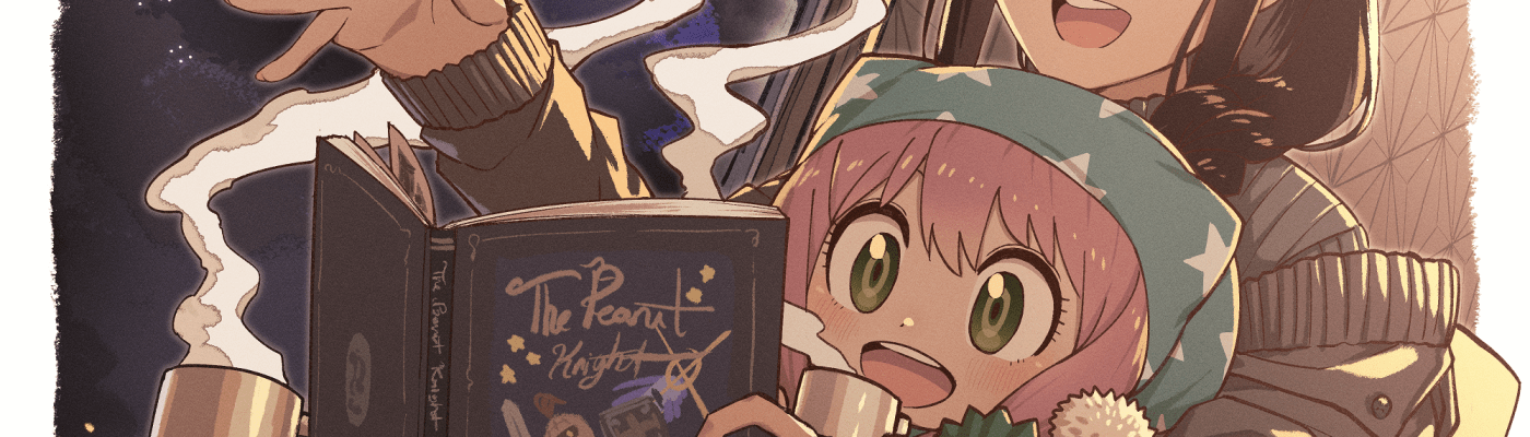 Ah, the classic fairy tale of “The Peanut Knight”! Best read in your mom’s lap, with a hot cup cocoa and cuddling with Director Chimera. ★ 【FumaFu】「 アーニャとヨル 」 ☆ Author Recent Posts Follow usStaff Follow usLatest posts by Staff (see all) Reader’s Corner: Diary of a Female Lead (Vol. 5), Choking on Love (Vol. … Continue reading Fanart Friday: Anya and the Peanut Knight