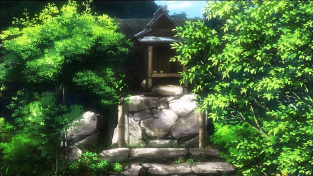 This kind of scenic interlude weaves in and out of the entire series, appearing in practically every episode and even featuring in the opening sequences of all three seasons. The majority of these pauses are briefer than the first “establishing” interlude, lasting long enough to recite a haiku or two at most (or, for the quick-witted, perhaps compose one). They serve to gently but firmly remind us to breathe for a moment: to breathe in the wonder of nature or, should one’s suspension of disbelief not be so readily engaged, to find momentary respite in the stunning artistry that conveys the natural life of rural Japan so compellingly.