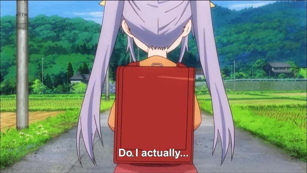 And here’s where I think Non Non Biyori actually provides a valuable insight that Psalms does not quite manage. Non Non Biyori starts with making the space for selah in the midst of mundane everyday life, right from the outset with those first three minutes in episode 1. The show creates for its characters a pattern of life organized around selah, around breathing spaces. So when a crisis or conflict does hit, and our beloved cast teeter on the edge of a downward spiral, they are able to dig in and breathe for a moment in the pause. They’re used to doing it. And from there, they extend grace to others and to themselves too when they need it most.