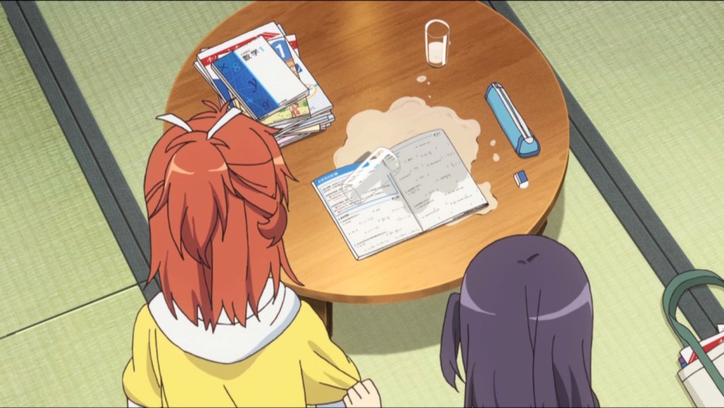 Or take the time when Natsumi (notice the pattern here) puts off doing her summer holiday homework until the last minute, panics, works furiously, and then spills juice all over her belated yet nevertheless hard work. Cue lingering comedic pause. But instead of raging or using the accident as an excuse not to complete the homework, Natsumi takes a long moment and ultimately owns her decision to do the work, and starts again.