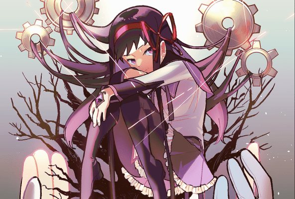 Ripe with metaphor, this illustration of Homura Akemi captures the character’s strength as well as the machinations and desires that drive her. Essay, anyone?