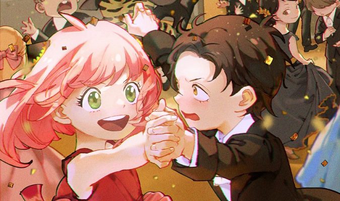 Damian’s face in this illustration! And all the characters watching from behind (see Yor?). I LOVE IT.