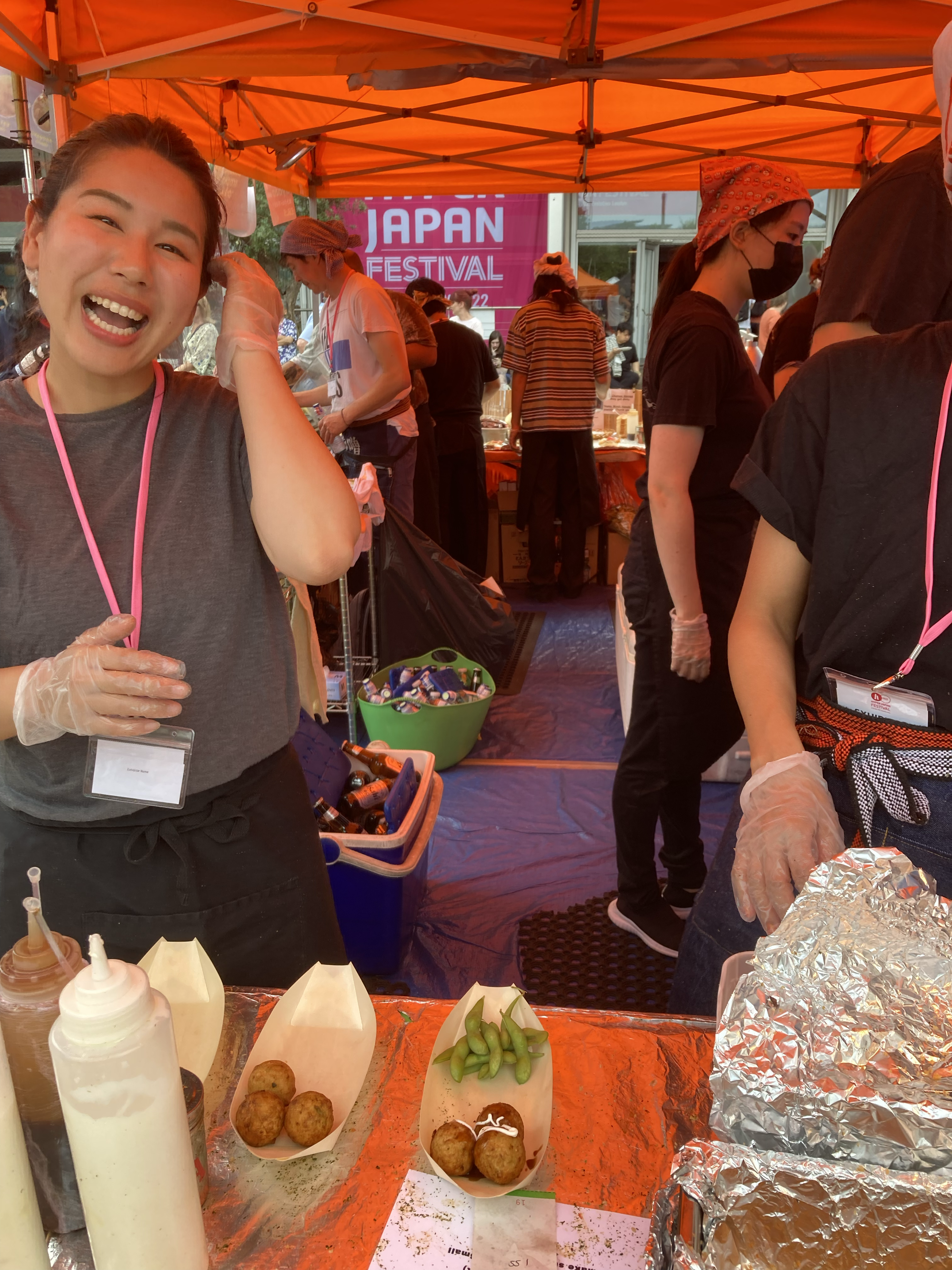 But it was worth the wait when that fresh ebi fry was served up in my wooden bowl. And to be fair, there was plenty to see and listen to while we waited: in addition to abounding cosplayers, the Festival Stage, the smaller of the two performance areas, was right in the thick of the food area. Subsequent queuing experiences were much more reasonable—perhaps fewer people were eating on site? Either way, the cooks certainly had their work cut out for them, yet managed to keep a cheery attitude all the while.