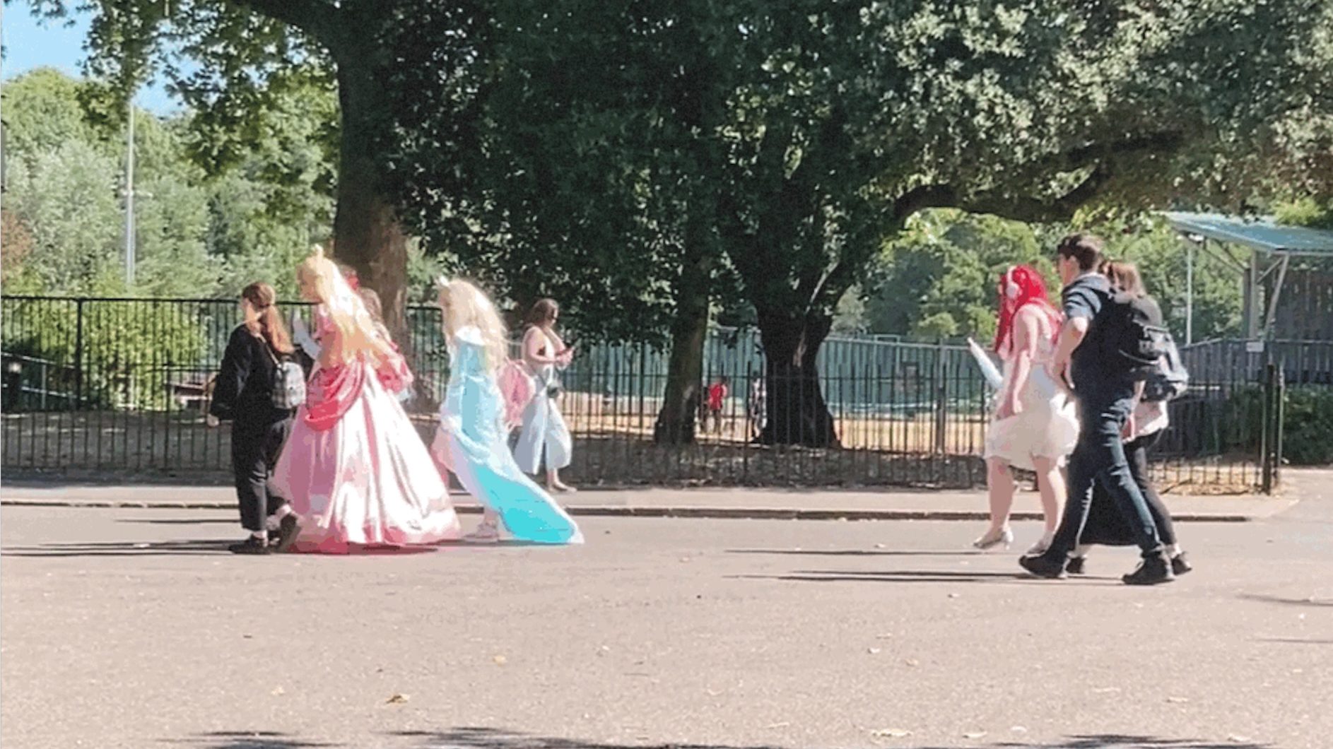 One peculiarity of the festival is that it sells separate tickets for the daytime and evening sessions (on Friday), and morning and afternoon sessions (on Saturday), meaning that everyone needs to clear out for about half an hour or so in between sessions, even those who have a three-day pass. This meant that there were times during the day when there were more exotic creatures to be sighted among the trees and grassy reaches of Battersea Park than even the most over-populated isekai lands. There was one point when I’m sure I read disappointment on the faces of a bride and groom who were in the park for their wedding photos: they were decidedly not the best-dressed couple there, and were in fact noticeably underdressed compared to many a picnicker among the trees. Poor dears.