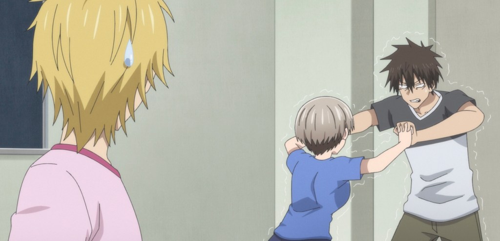 It’s beginning to look a lot like Christmas and Uzaki is looking to hang out with her senpai. The first episode of season two starts with a nice little montage of the two of them spending Christmas together, but before we can plan out a new entry in the 12 Days of Christmas Anime, the new OP (quite a bop, btw) moves the action back to summer. Uzaki is feeling pretty down about summer coming to a close, but Itsuhito brings her spirits up by reminding her that summer isn’t the only time she can hang out with Sakurai. The scene transitions to a quick flashback of Sakurai helping Uzaki with her swimming before Itsuhito convinces the two to go bowling together with him. Uzaki and Sakurai (aka “punk” according to the name she inputs onto the scorecard screen) decide to compete, suggesting whoever has the lower score must do the bidding of the other. Despite Uzaki’s confidence, Sakurai has actually improved since the last time they played. Will he finally taste victory? Meanwhile, Mr. Asai makes plans to close early for the day, but Ami neglects to tell Sakurai and Uzaki, making her own fiendish plans. Unfortunately for Ami, the fun ends when Mr. Asai returns and she gets her just deserts. A while later, we find Sakurai struggling to stay awake before class due to Uzaki keeping him up late playing video games. Itsuhito suggests he take a nap, promising to wake him up before class starts. But of course things don’t quite play out that way, do they?