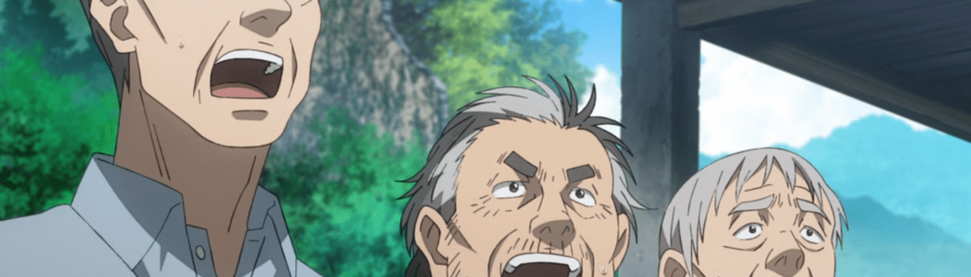 Okay, so I’m typically not one to go for horror anime. As I’ve made clear countless times, I am a Slice-of-Life fan. If I want to be scared, I’ll check my bank balance after an anime convention, thank you very much. I decided to give this one a shot because it’s a new show airing on Toonami that looks interesting to me, and the premise is intriguing. I was not disappointed. The first episode held my attention and did not let it go for a minute, introducing a lot of different storylines but not feeling overloaded. This show left me with so many questions when the ending credits rolled. Typically I get frustrated when an anime does this, but in this case, the questions are what will have me tuning in next week! Who is this girl Kimi? Where are her parents (baby girl wasn’t holding a phone when she was “talking” to her “Mother”)? What’s the deal with these foreigners? Why do all these old adults live in this run-down apartment complex seemingly in the middle of nowhere? What on earth happened to Hideo? And the most important question of all…and one that I asked out loud to absolutely nobody…WHY IN THE WORLD DID KIMI JUMP OFF THE SIDE OF THE BUILDING SCREAMING “OPTICAL ILLUSION”?! I swear Kimi is one fry short of a happy meal or one rice ball short of a Fruits Basket.
