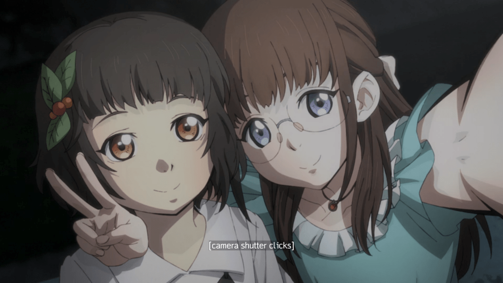 Later on, Kimi and Yuri meet up and become friends rather quickly. Kimi decides to show her new friend the storage area/cave from earlier that day, and after a few jokes, the two girls discover a room filled with creepy drawings and an ink pen. The girls return the pen to Hideo, who gives our girls a bit of fanart as thanks. The next day, there are even more strange goings on, including dead fish scattered all over the yard and the foreigners praying loudly, much to the chagrin of the landlady. Most disturbingly, Kimi discovers Hideo dead in front of his computer. DUN-DUN-DUNNNNNN…?
