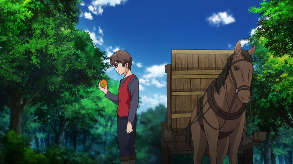 All right, folks, it’s time to grow your very own generic light novel fantasy series! You already have the “overpowered main character” light and the “harem” water at the ready, right? What’s that? You’re running low on isekai fertilizer? No problem! You still have those all-important “RPG Mechanics” additives, so just add those in and we’re in good shape! Of course, it’s important for your crop to have some distinguishing feature, so here, we will use the seed of “farmer beats up stuff with farming techniques but doesn’t want greater responsibility” to try to grow something that fantasy fans with less-discerning palates will eat up. Sure, those looking for quality products will point out how the crops look visually subpar in both art and animation, or how the taste is bland, especially with the protagonist being rather dimwitted outside of farming knowledge, or how there’s a lack of any emotional juice, with no sense of connection between the protagonist and the princess. But that’s okay, because we aren’t selling to those people anyway! We’re just here to grow something for those who want a mindless fantasy comedy to chew on, and that’s not hard to do, so we should have no problems, right? …Wait, what are you doing adding in a CG dragon that looks like something from a claymation video?!