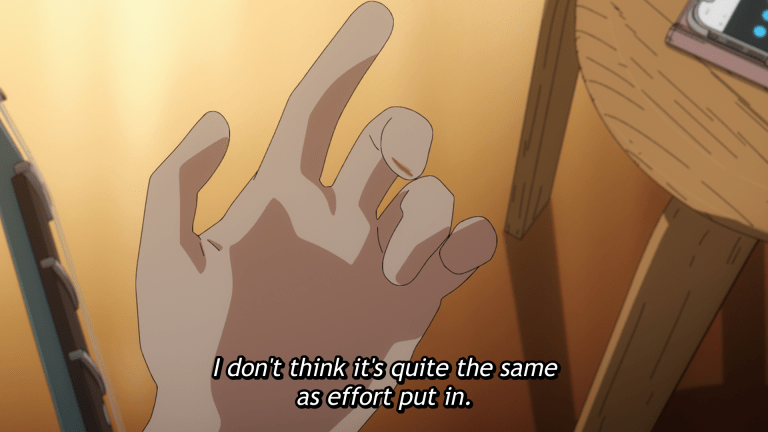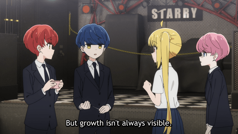 And through these reflections, Hitori figures out that her goals have changed a little bit. She still wants to make something of herself and overcome her social anxiety. But now the dream’s a little bit bigger. It’s not just about her, but about the whole band. She’s got real friends now: friends to laugh with and struggle with and perform with. Friends whose dreams she wants to come true as much as her own.