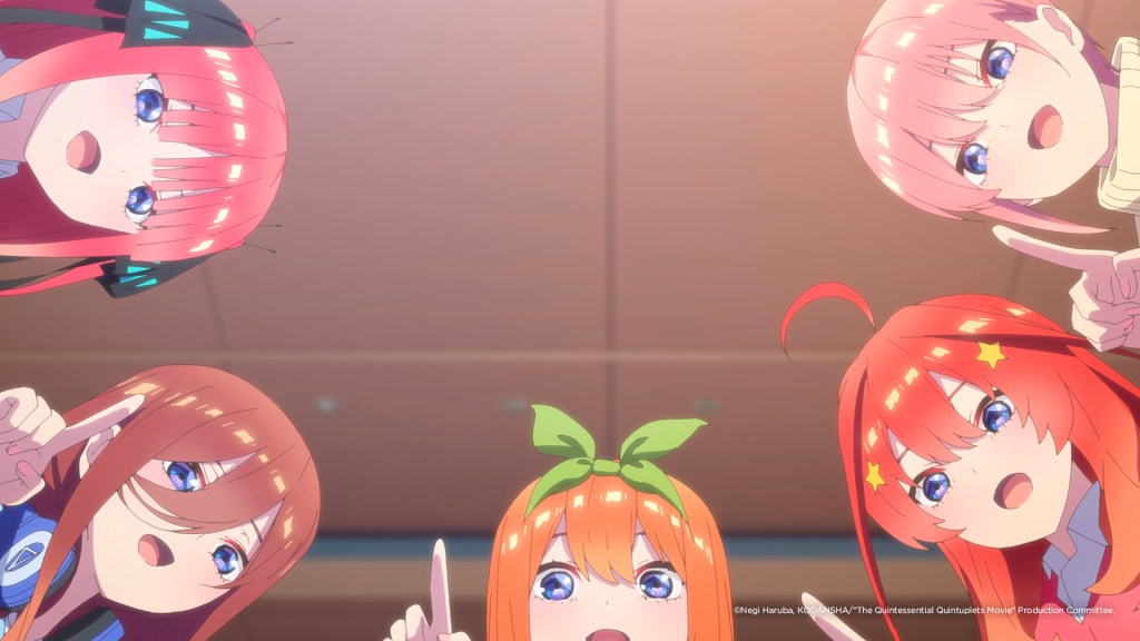 During two seasons of The Quintessential Quintuplets, we have inched closer and closer to the resolution of this impossible quandary, and to seeing who Futaro will end up marrying. This is not a spoiler, as it’s the first scene shown in episode one, but the identity of his bride has led us to the end of the anime with this 2-hour+ movie. Questions that have been left unanswered all this time are resolved along the way, as are his relationships with each of the sisters.