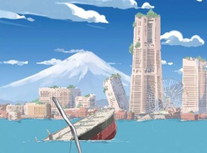 It’s the weekend and Youko and Airi are off on their Yamaha Serow for an adventure in Shuumatsu Touring! They are traveling the coastal route to Tokyo, hitting all the famous tourist spots along the way. Or at least trying to? If you squint, maybe you can see the resemblance between the glossy promo pics and what lies before them now, about fifteen years or so after something happened to wipe out the population, irradiate the land, and turn Japan back over to the mercy of its native flora and fauna. You see, shuumatsu, or “weekend” in Japanese, is also a homonym for “the end of the world”, and this motorcycle tour is happening after the apocalypse. But you probably got that from the English title, which sadly can’t replicate the wordplay.