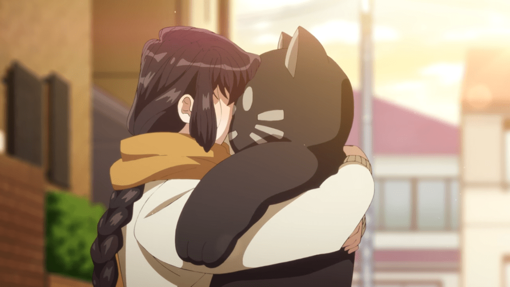 In the anime, we’re somewhat privy to Komi’s thoughts and feelings, which are quite the opposite of what the others think them to be. It’s obvious that she loves her new stuffed animal. Why wouldn’t she? It’s cute and exactly up her alley (think of the cat ears that often spring up on Komi’s head).