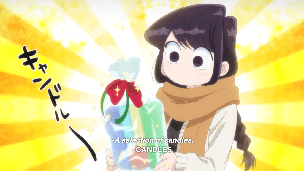 Komi is thrilled by the party and gifts, even if she can’t express that feeling.