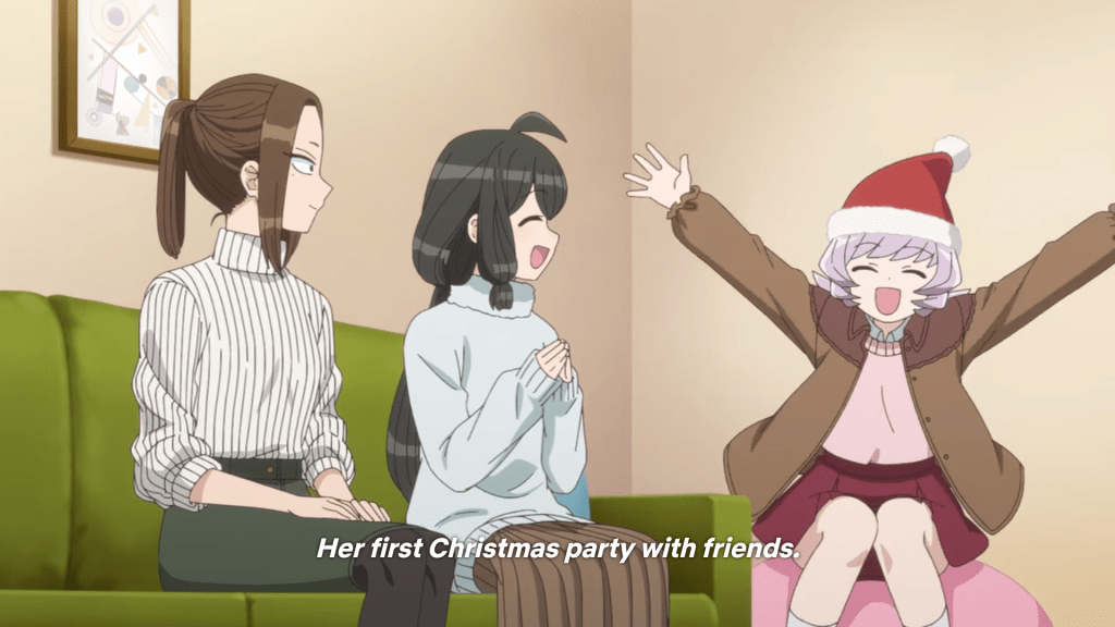 Komi Can’t Communicate‘s Christmas episode (ep. 16) turns it up a notch, since, as the anime’s title suggests, Komi struggles with interpersonal communication, which makes it even more challenging for her friends to find a gift for her and vice versa. And yet, by the end of the Christmas Eve party at her house (they invite themselves over), they’ve given Komi exactly what it is she desires—and it’s not the physical gift they purchased. It’s something far more valuable, and something that lies at the very heart of Christmas.
