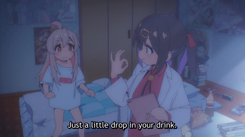 Okay, there are definitely a lot of issues with this anime. To start with, the premise is based on a whole lot of sketchy actions from the little sister, so this definitely is not an anime for those who can’t overlook stuff like drugging played for comedy. Also, the episode can get fairly vulgar with the humor, especially with how much of it is based on Mahiro’s reactions to his female body. In fact, the anime adaptation upped the ecchi factor significantly from the original manga, with noticeably more focus on Mahiro’s body in varying levels of nakedness. (Considering this is the same studio that did Mushoku Tensei, that might not come as a surprise.) The episode does try to add a bit of reflection on Mahiro’s past views of his sister and what he thinks about his new role and identity; but then again, the whole drugging thing makes it hard to take anything too seriously, including any potential insights on actual transgender struggles. Overall, while I find the manga to be something of a guilty pleasure that can be a fun read if you don’t think about it too much, I think the anime pushes things a bit too much to the “guilty” side for me, without adding anything of note as an adaptation to make up for it. As such, this anime, like Mahiro’s life as a big brother, is over for me.