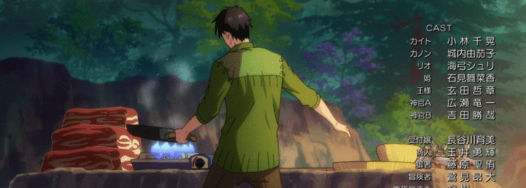 Well, well. After the initial hilarity of seeing Tsuyohi react in disbelief to his bizarre ability, summon an Amazon-looking package from the ether, find the sweet roll and the bottle of water he just paid for, and insert his coins in the floating screen, I wondered if this show would be a one-trick pony. What else could this story offer? Well, for starters, a bit of warmth: Tsuhoyi is a great, kind, unassuming guy. You also get some delicious-looking food, giving Campfire Cooking an iyashikei (healing) feeling. Extra points for having the economics of the fantasy world make a little sense: it’s frustrating when a show just assumes that the logistical problems of our ancestors, which were pretty complex, might be fixed by any bored Connecticut Yankee in King Arthur’s Court with a smartphone. Our protagonist is trying to fit in, and both he and the show itself are relaxed, kind, and humorous. And sometimes, that’s enough.