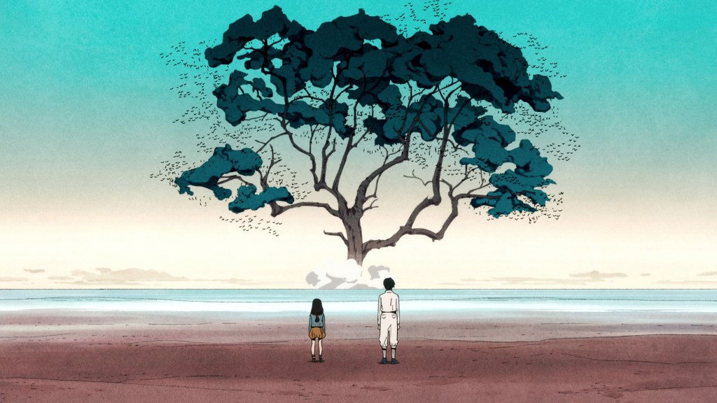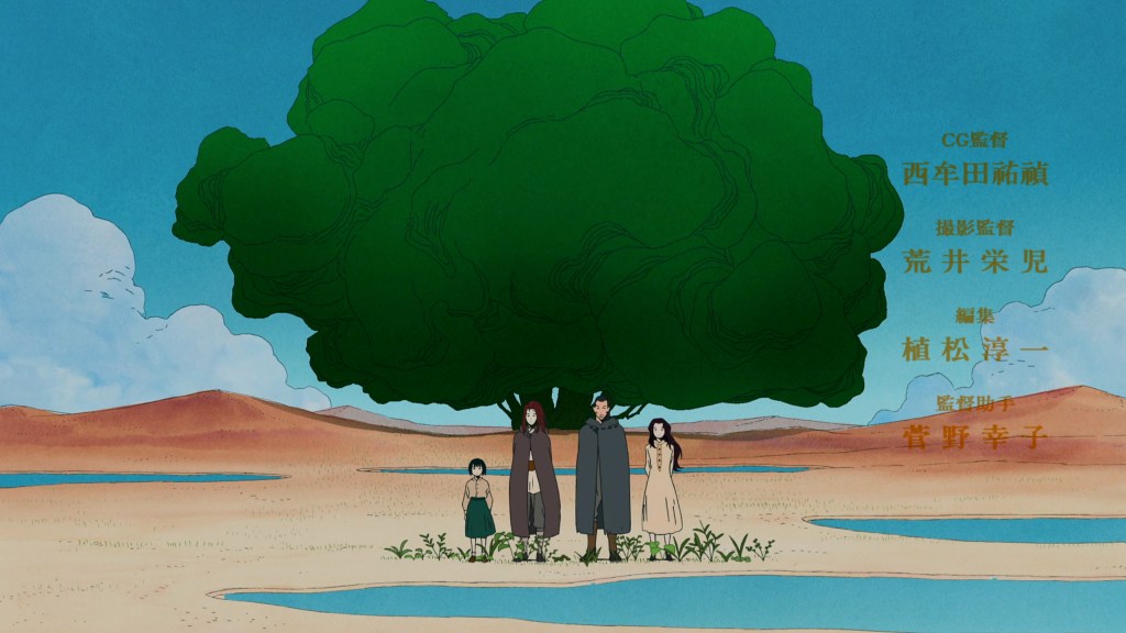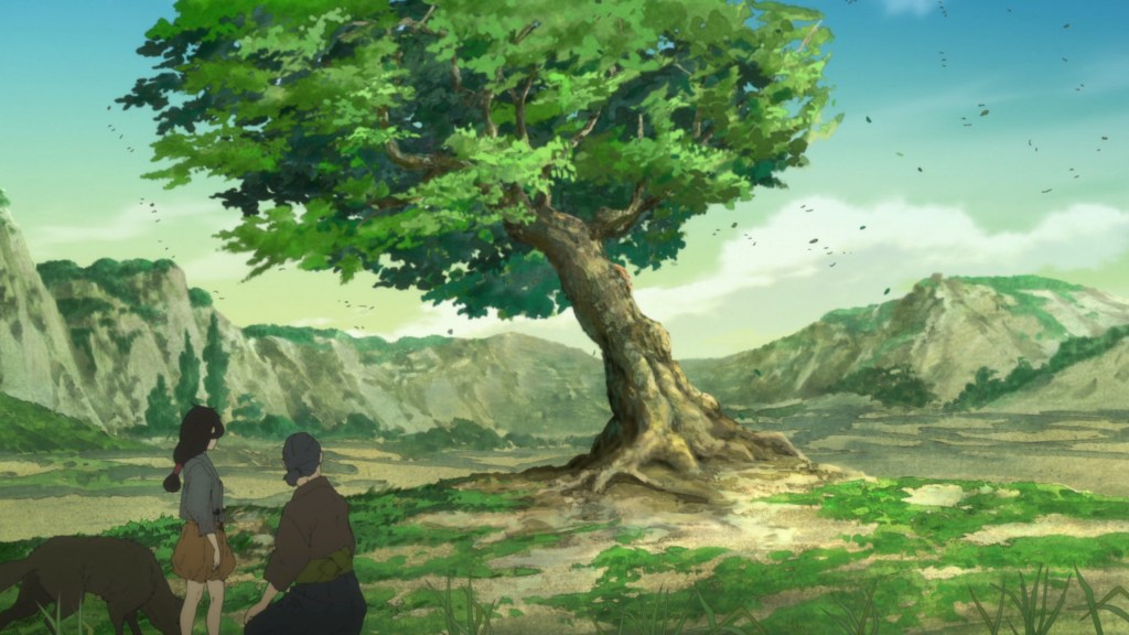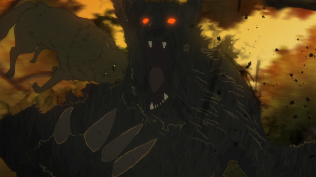 Talk about saving the best for last! This is it, people: the most stunning and intriguing series of the season. It is gorgeous and melancholy and action-packed and stuffed with emotion all at the same time. And I’m just talking about the opening sequence. Without a doubt, The Fire Hunter wins this season’s award for aesthetics—which is not all that surprising considering the stylish track record of studio Signal.MD, with its distinctive character and color designs in films like Words Bubble Up Like Soda Pop and The (Birthday) Wonderland. But it’s really the shadowy world of Mars Red or Science Saru’s ink-painting inspired The Heike Story that offer the closest parallel to the delicate line-work and kagenashi or virtually shadowless, textured design on display here in The Fire Hunter. This unique aesthetic gives the artwork a timeless, earthy feel—which proves fitting when a mid-episode sleight of hand reveals that the ancient historical drama we thought we were watching is in fact set in the distant future. The reversal of viewer expectations here is accomplished in an understated way, with a demure wink at an audience that must now quickly reinterpret all that has gone before to fit it into a new paradigm. That is the kind of series I suspect this will be: a sweeping adventure with a steady stream of quiet revelations that gradually blow one’s mind until one gives up attempting to predict the outcome. (It comes to us from the powerhouse behind Ghost in the Shell, Mamoru Oshii, on series composition, after all.) As for the characters, there is as much depth and dimensionality to them so far as the artwork, with Touko (the season’s sweetest cinnamon roll) and her gruff aunt Akari revealing hidden layers, and Rin conveying a shocking degree of viciousness through a mere glance of her eye upon a retreating Touko as she leaves the village far behind. Such emotion packed into so few frames is striking. There are more characters too, but I will leave them for you to discover as you watch this episode. Because that is what you should do right now. You won’t regret it!
