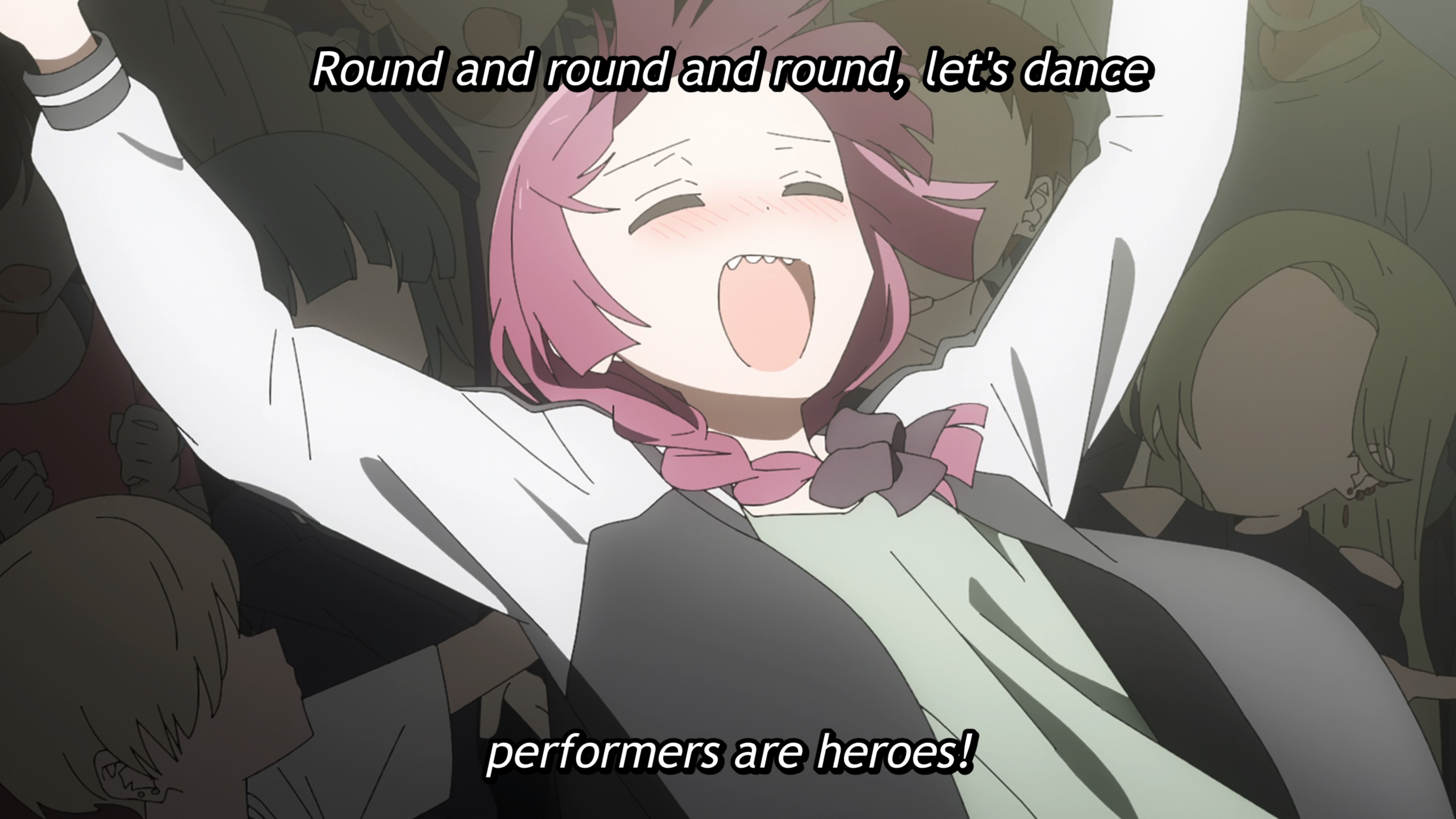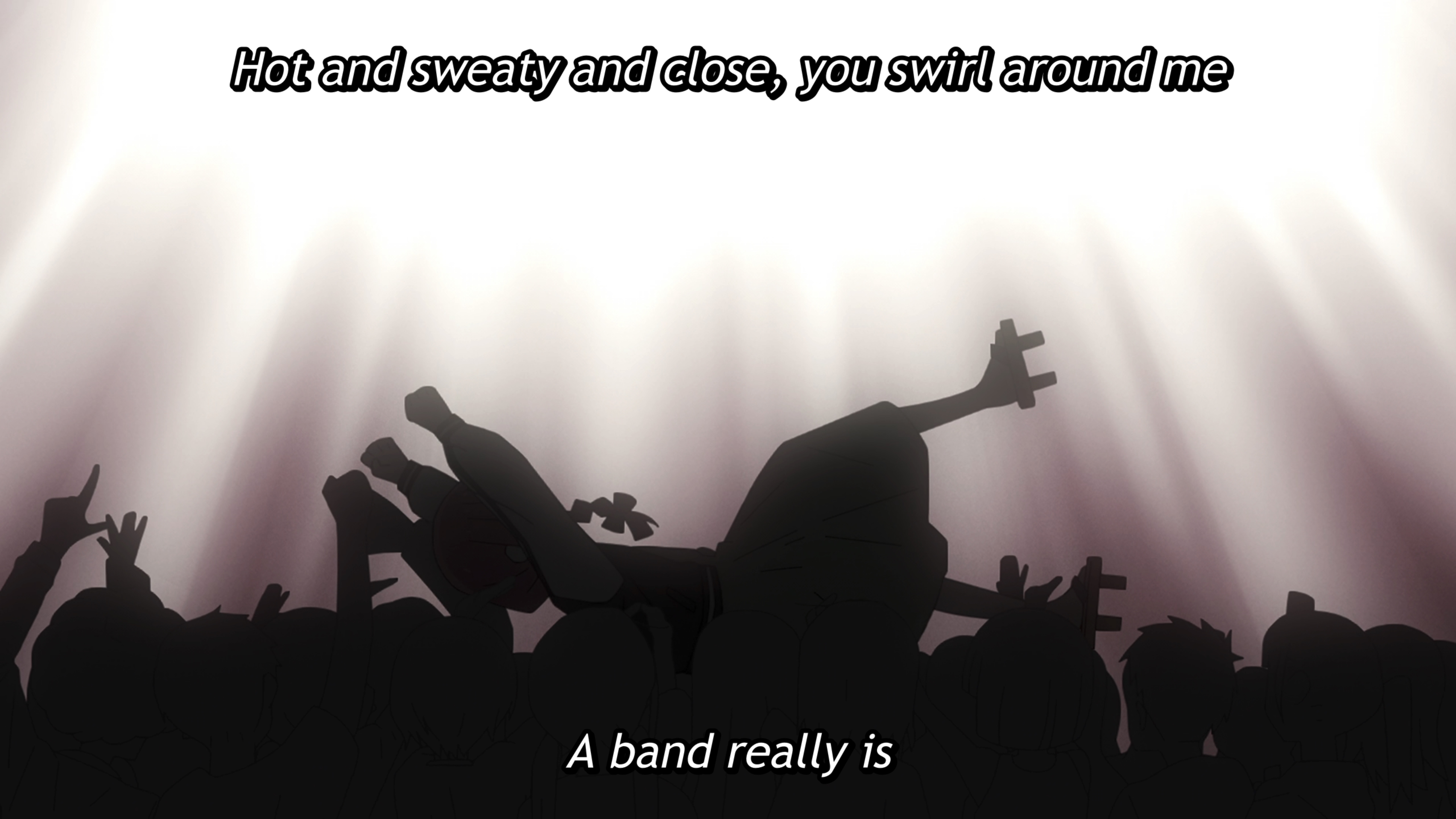 That’s the image of a hero that Hitori eventually adopts. When she realizes that her hero Hiroi isn’t as perfect as she thought, she begins to wonder: Maybe she doesn’t need to be perfect, either. Maybe it’s okay if she fails. Maybe it’s okay if she relies on her friends. Maybe it takes time to become a hero. Empowered, Hitori takes that first step forward and says “yes” to the school concert.