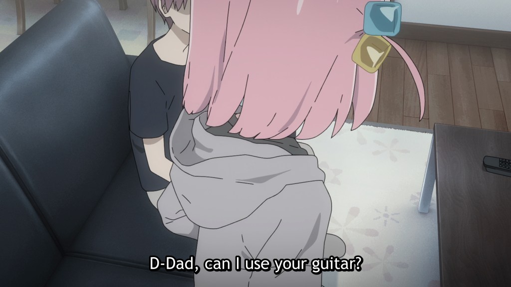 The second step is to figure out what we can do right away, in the here and now, to move toward the vision. It needs to be a choice that is within reach today and not something that will hopefully present itself one day if we’re patient. It needs to be a choice that doesn’t depend on ifs and whens. Bocchi knows straightaway what this first step is: get Dad’s guitar and start learning! (Even if it does involve English!)