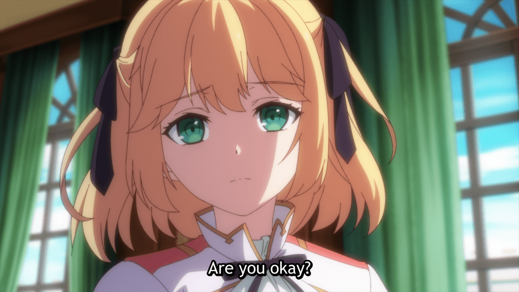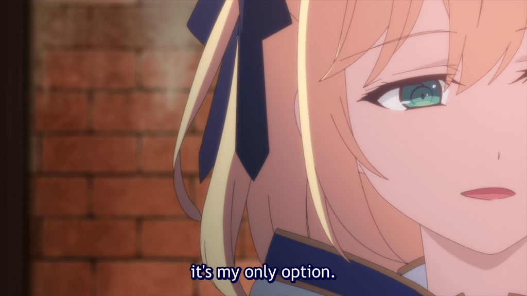 Yeah, I’ll admit it: I didn’t understand the pacing of these episodes. They’re filled with several plot threads that don’t fit together: Euphie’s continuing melancholy in the wake of her canceled engagement, hints of her growth through conversations with Anis and Ilia, the whole subplot with Algard and the king, and the looming threat of dragon-induced destruction. To be fair, episode five does cap off the first volume of the light novels, so I can understand why they wanted to rush things to fit in a satisfying conclusion. Still, there’s a lot of turbulence along the way, making for a bumpy and often disorienting ride.