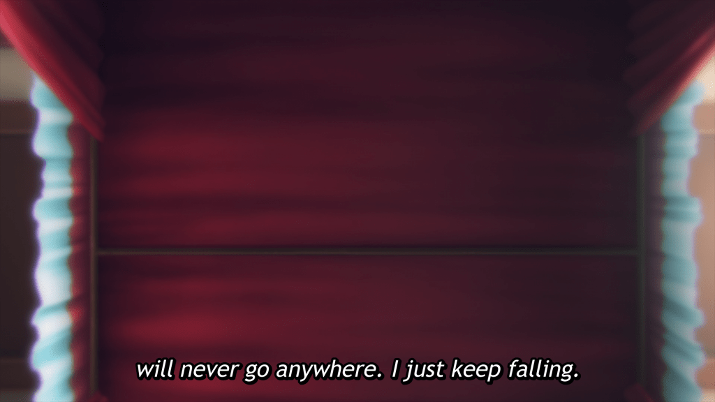 Euphie, too, has been learning how to process this transitional time, during which her ambition for queendom is being sucked out of her heart, leaving her empty. Bedridden with illness after the ordeal that episode three put her through, Euphie finds herself wondering what comes next. She, too, envies Anis and the freedom Anis has that she lacks. And that twisted perception of her identity traps and encloses her, casting her into darkness.