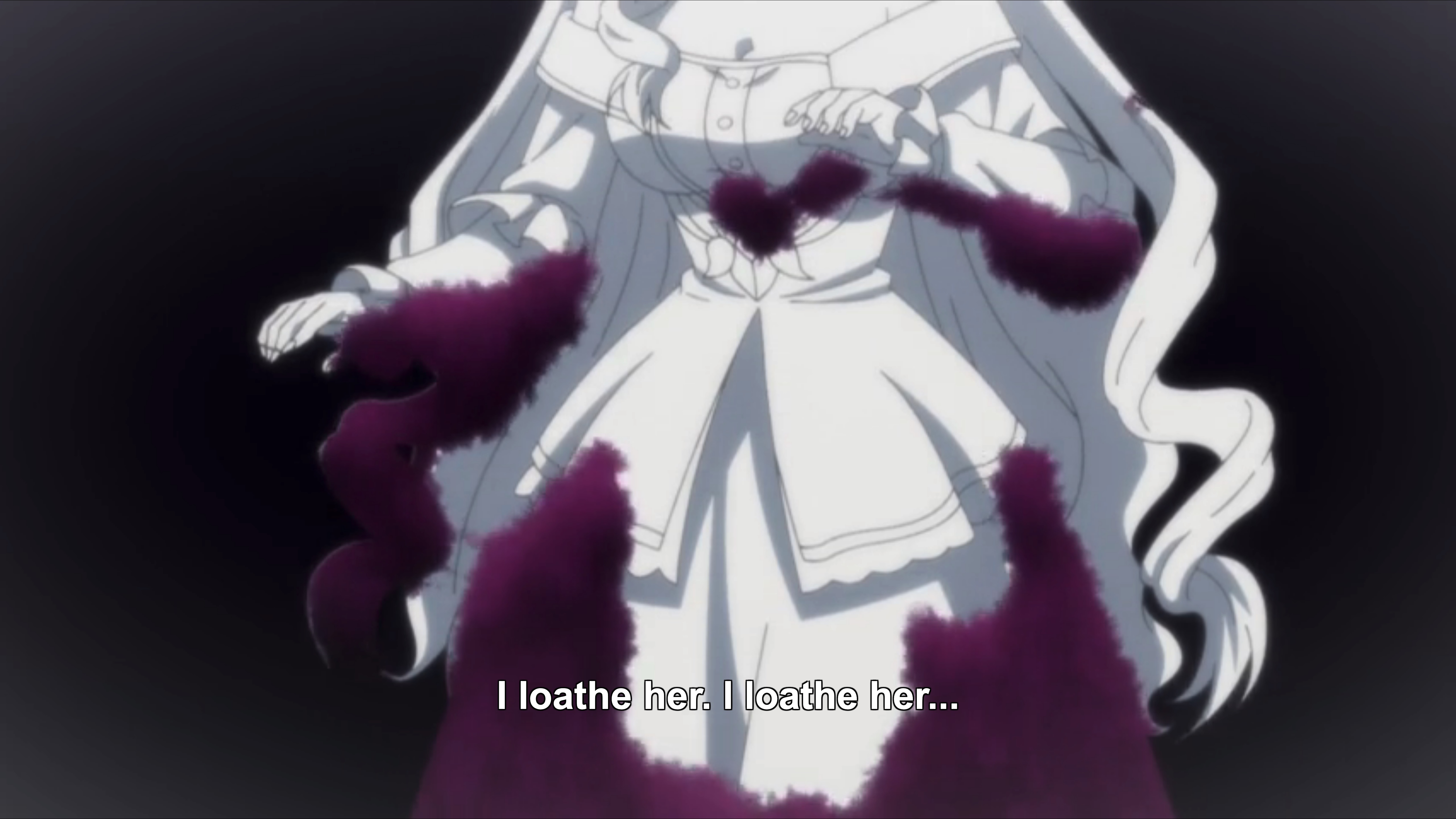 But Liese also has an enemy—a dark, nebulous presence that haunts her nightmares and increasingly, her waking moments too. This demonic force is the Witch of Yore, whose merciless taunts hammer a wedge into the crack inside Liese, splitting it wide until it is a gaping wound that allows her enemy’s whispers access to her heart. Though she is determined not to fall for the lies, Liese is ultimately powerless to fend off the onslaught of accusations and suspicions that play off her fears about the damage she’s caused through her tsundere ways. The shame is redoubled as the Witch’s voice entreats Liese to rage against her “sister” Fiene and Sieg as well, isolating her from her friends. The whole world becomes a place of darkness and betrayal, and now every moment hurts, to the point where Liese loses consciousness from the torment of it all, sinking away inside herself and falling into a well of despair.