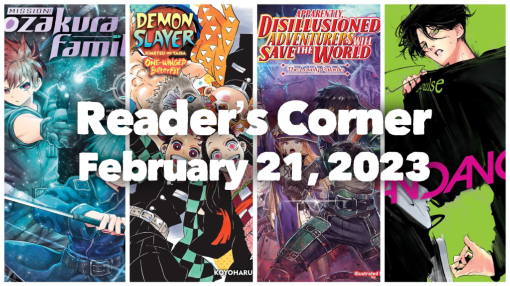 The theme this week for Reader’s Corner is adventure, headlined by two new Demon Slayer works, anticipating the upcoming season (and theatrical screening of its first episode next month). But that shonen giant is also joined by an OP uncle, a spy family, and disillusioned adventurers. Dancing high schoolers and a new GL release round out this week’s review.