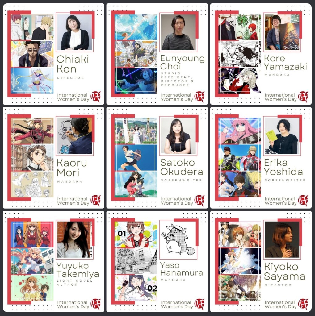 This is our second year marking the holiday in this way. When I started this project last year, I was under the impression that these industries were still pretty much a man’s game, with just a handful of women managing to rise to prominent roles. That’s the stereotype, right? And it’s true that these industries are not exactly winning any awards for basic things like representation, pay equity, or support for parental leave or childcare provision. The industry has a long way to go before these kinds of things become the standard. (Which is partly why studios like KyoAni stand out so much for how they flourish in these vital areas! Check out last year’s post for more on this!)