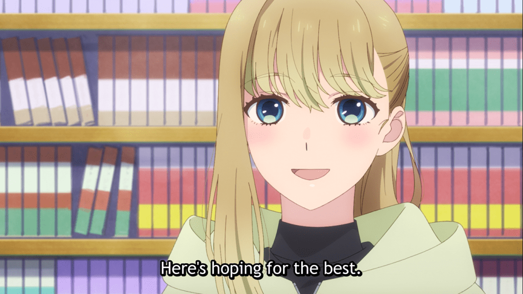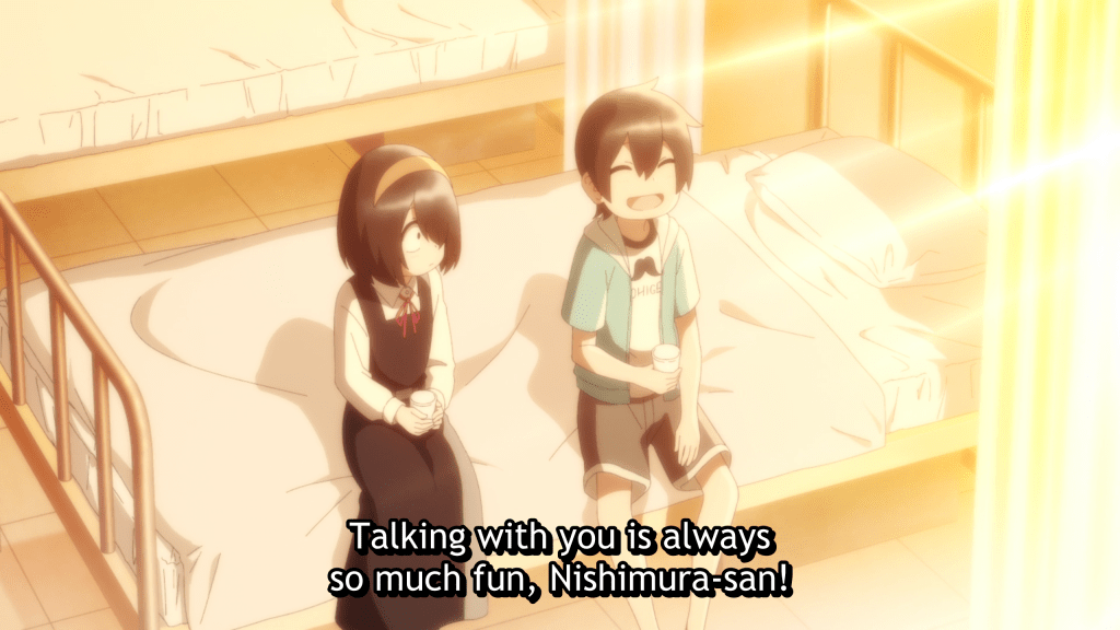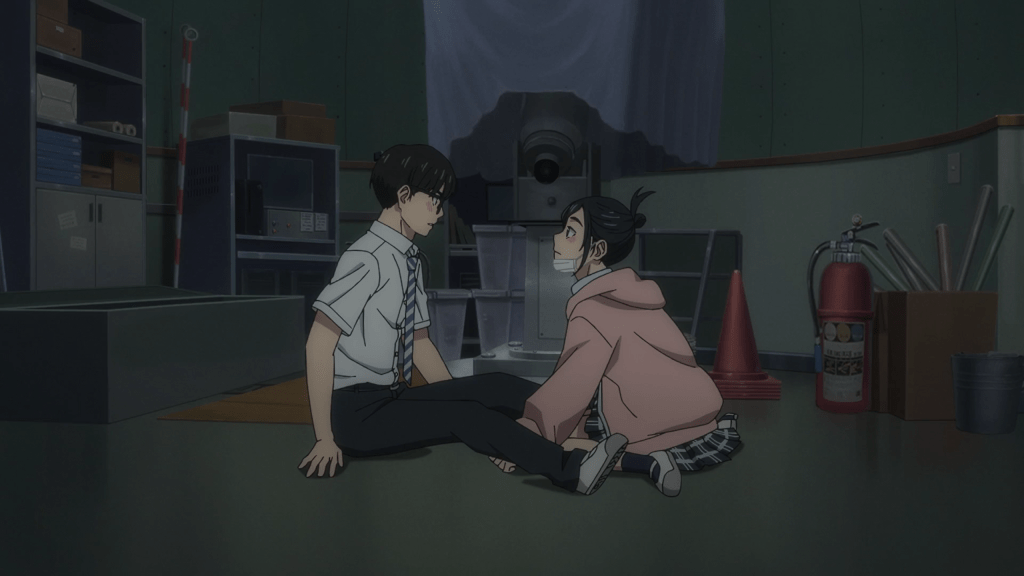 The animation style tracks along with the style in the manga; it’s dark and gloomy when needed, but when the moment calls for it, things get just stunning! I especially love the character designs in this one. Everyone just looks so realistic without overdoing it. The facial expressions are so warm and gentle. This manga-ka focuses a lot on the eyes of a character, and as such, they are very detailed. If there is any weakness in the production, the music can be a little too…present…if that makes any sense. I was aware of it a little too much, especially during the night montage. Maybe if it were turned down a bit, it would be better. Also, maybe I’m spoiled by Call of the Night, but the night scenes when our two dorks are strolling around their downtown area don’t seem as rich or immersive as in that series…So where does that leave us? Well, I don’t know about you, but it’s going to leave me with one more anime to watch this season! OF COURSE, I’m following it! Yes, Insomniacs After School is shaping up to be another high school rom-com, but this one offers something special.
