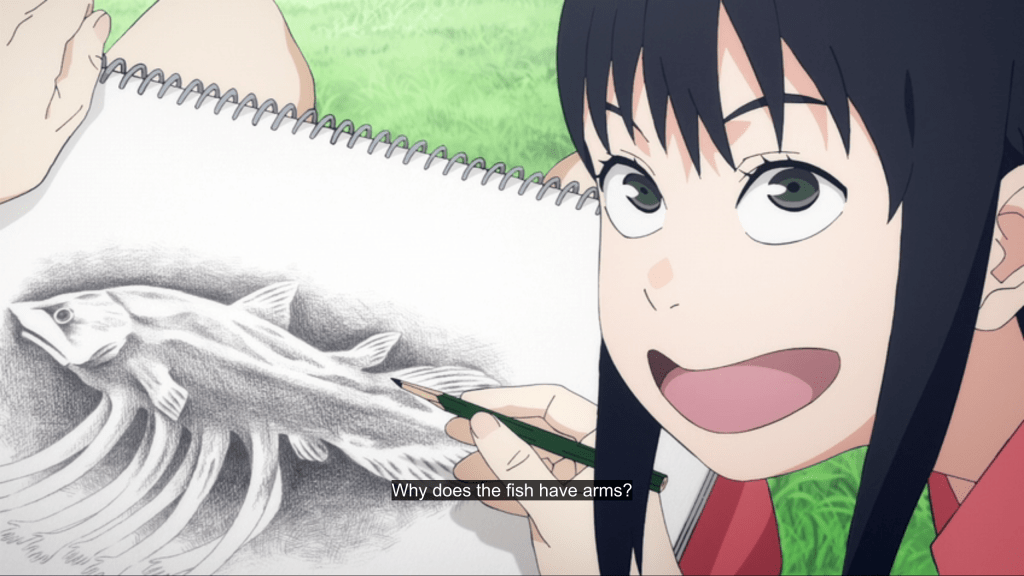 Periodically, an anime comes along that is reportedly excellent, but which I can’t stand because of the art style (Keep Your Hands Off Eizouken! springs to mind). This is one of those anime. And it’s not even all bad in the art department; the landscapes are quite lovely. But I can’t stand the characters’ faces. They’re just unpleasant to look at. I think I’m going to have to pass on this one, but if you don’t mind the faces, this is probably going to be pretty good.
