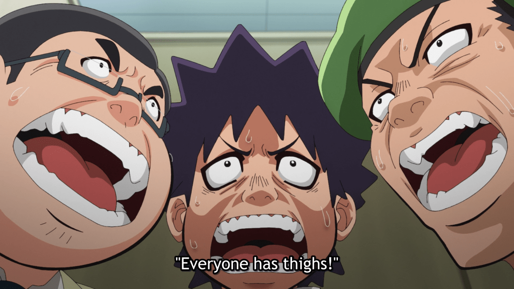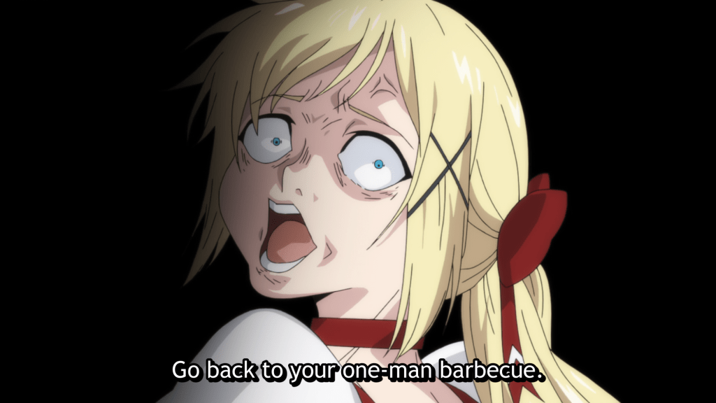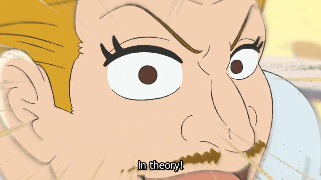 The story isn’t important: it’s all about the setup and comedic execution. And though the jokes don’t always land, and are sometimes charged with ecchi imagery and double entendres, the attempt is commendable, with its go-for-broke approach. But unfortunately, it breaks down toward the end of the episode when, you know, the plot gets in the way.