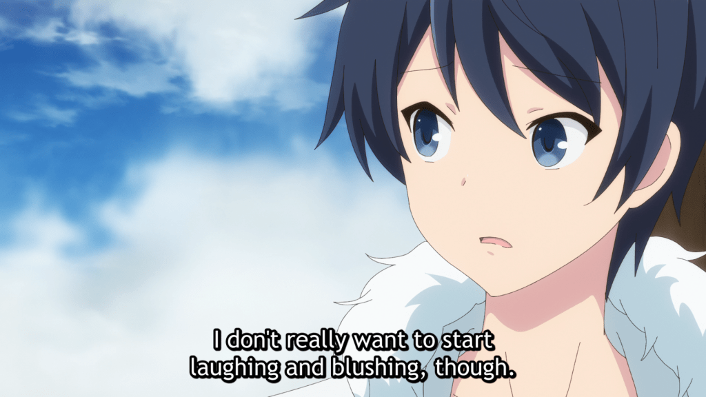 …I’m all in favor of brainless isekai fluff. The problem with Smartphone is that it might as well have been written by a smartphone. So far this season, we’ve spent all of five seconds setting up the microscopic stakes and tension, in favor of a male power trip—and I get that that’s like 90% of isekais anyway (including season one of this same show), but there needs to be something of substance to carry the story along. When you eat cotton candy, you expect to get some in your hair; but if it all gets in your hair and you can’t eat any of it, that’s annoying. The only thing worse than a male power fantasy is a boring male power fantasy. And that, sadly, is all that Smartphone seems to be bringing to the table.