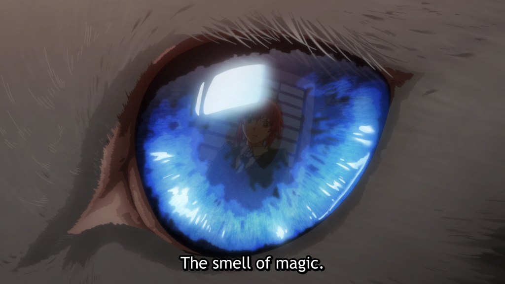 The first few minutes clearly establish this season as a completely new phase in Chise’s story, as she articulates all that she learned from the previous season’s journey, and her aspirations for the road ahead. The sound design is somewhat experimental, with atmospheric, slightly ominous echoing birds and the discordant soughing of trees at times, orchestral swells at others, and jazzy piano riffs in between. Like the animation, there is plenty to sink your teeth into sonically, here, or equally, you can just let it set the mood and wash over you. Crucially, Junna is back with her mildly Celtic-inflected vocals on the OP. In short, this premiere manages to maintain the best elements of the first season, while setting up season two in a class of its own.