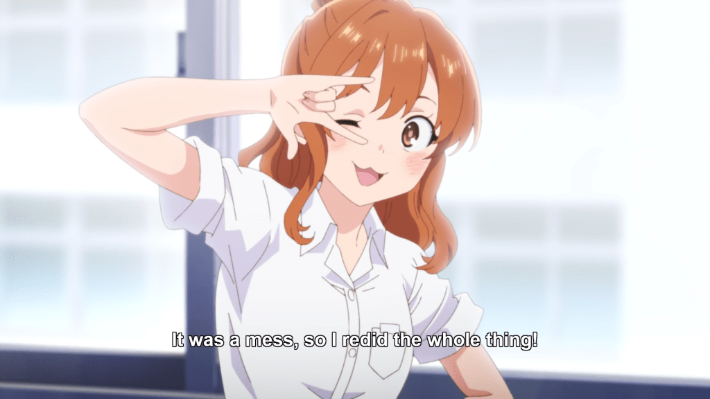 Okay, this show had me from the opening titles. I’m always a sucker for “Fish out of water” style stories, and I’m even more of a sucker for cute funny RomComs, so this is gonna be a must-follow for me! Like Claire, I’m also SO GLAD that we don’t have yet another Tsundere character that seems part and parcel of shows like this. All of these characters just look totally cool and relatable. Speaking of character looks, the animation style for this one is REALLY nice. It almost puts me in the mind of last seasons hit The Angel Next Door Spoils Me Rotten. It’s a simple yet really cute style. Lastly, shoutout to our girl Mitsumi who was so determined to make the Entrance Ceremony, she ran the last 10 minutes to school barefoot and gave her speech FROM MEMORY. I couldn’t tell you what I had for lunch last week from memory, and she remembered an entire speech! Way to go baby girl!