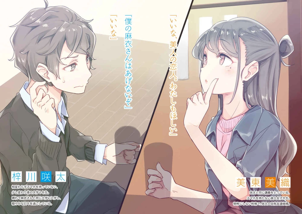 Rascal Does Not Dream of a Lost Singer is bereft of details about Sakuta’s thinking beforehand, but during the evening of the mixer, we know he’s not feeling it either. He’d talked to a friend, avoided temptation, and was then abandoned by said friend. But before he’s able to abscond for the night, a young woman, Miori Mitou, comes and sits across from him. The two strike up a conversation and, both being glib and overly honest, they become fast friends. Miori then meets Mai just a few days later and becomes friends with her, too, gluing Sakuta and her together even more tightly. A friendship is born out of an event Sakuta wanted to run away from.