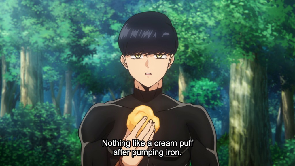 I usually leave the highly anticipated shonen series to the guys on the BtT team, but seeing as how I kinda took one for all and sundry at the day’s start (cough), I feel like I earned this one. What is this one, do you ask? Why, it’s a solid, engaging, well-made, very fun first episode to what promises to be a dynamic and entertaining series! In short, it’s a winner. I’ll admit, part way through I was a bit nervous that Mash was just going to be this super strong super dense one-note monotone shonen mc (the door gag stressed me out), but things took a surprising turn for the sentimental, delving into how Pops ended up adopting the abandoned unmarked boy and the bonds of family love that tie the unlikely due together by the heartstrings. I even teared up a smidge, against my better judgment. Don’t get me wrong, this episode was 95% full-on action and gags, but that little dash of human emotion really brought it all together for me, serving as the cherry on top, to use a metaphor that I’m sure Mash would appreciate. The animation is slick (as expected of A-1), in a classic shonen style that has just a hint of distinctiveness, prolific use of forced perspective that lends real dynamism to the action, and visual gags that land well. The score is on point and adds a lot to the episode, giving it a really polished, energetic feel that makes you want to grab a wand and jump in the fray with Mash and Pops against those cops. But most of all, the final sequence (which I have not spoiled above) plays out in a really interesting, and dare I say quite unique way, promising that far from being a rip off of established franchises (ahem, Harry), this series has some original twists in store for us. I for one am looking forward to the fun!