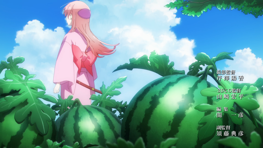 Production-wise, you’re getting the same great animation that you have come to expect. Though this time, instead of a lyric-spitting OP song, we get a completely passable yet nowhere near as great OP song, “Setsuna no Chikai (feat. Tsukasa Yuzaki)” by Akari Kitō. I do like that they used her prodigious rhyme-spitting skills for a small chunk of the song, but overall, there’s nothing too special about this one. With regards to the visuals, while they are stunning, they do seem to overload the viewer with what I would presume to be spoilers as to the characters we will come to meet and possibly also drop hints as to Tsukasa’s nature. I REALLY wish they wouldn’t have done that. Part of the appeal of the series is that we are given some small clues in the show proper as to Tsukasa’s nature. She says something or does something that gives you pause but doesn’t distract from the narrative. Putting blatantly obvious items in the OP is not fun and takes away from any future revelations, at least to me anyway. Let me be surprised about what’s to come, darn it!