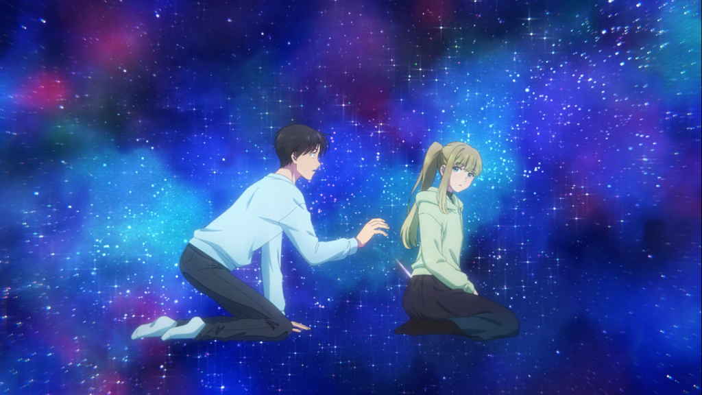 When our boss told us about what was coming up next for review, he mentioned this show and how I would love it, as the source material was done by the same person who did Sweetness and Lightning, another one of my favorite series. Funny how well TWWK knows us, as I fell in love with this one from jump. While I realize this is just yet another “Hapless protagonist being saved by a kind otherworldly cute girl” story, dawg gone it, you can inject that stuff right into my veins on a constant IV drip because I love stories like this. In that same vein, this story does bear a striking resemblance to Sweetness and Lightning, with the exception that the female lead is older and our protag can actually pursue a relationship with her without any problems with the FBI. Though I admittedly had some hesitation, as the last anime I watched involving manga creators and romance, Bakuman, really didn’t live up to expectations. This one feels like it’s worlds better just from the first episode. Also, can I please give a shoutout to Shiori? She didn’t do the now overused cliché of screaming out, “PERVERT! ECCHI!!!” and smack Ichiro like Mrs. Kamiya smacked Tai. While she did look CLOSE to doing it, she paused and listened, and when she found out it was an accident and he apologized, she apologized as well for jumping to conclusions. Can we get more of this in anime please? Also, I really wanna live in an anime neighborhood. Why? Simple. You can either have an angel spoiling you rotten or an entire galaxy next door. Sounds a lot better than my neighborhood.
