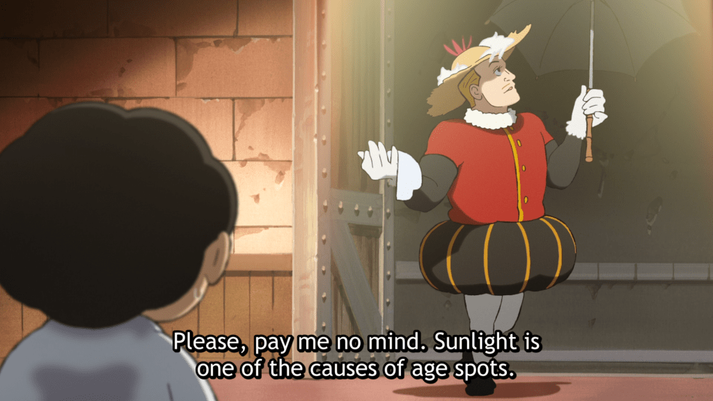 Best boy Bojji is back in Ranking of Kings: The Treasure Chest of Courage, which in episode one features two shorts. The first, “Kage’s Errand,” begins with Despa becoming despondent after discovering an age spot on his face. In fact, he’s so upset that he won’t continue training Bojji unless he’s able to eat a shuddercap, a type of mushroom known for beautifying faces. Kage takes on the task, but finding the fungus to be a rare commodity, has to head into a forest, where a fearsome monster he’s been warned of may not be the creature he originally envisions. In the second short, Despa is again causing trouble (“Oh, Despa”). He demands a higher payment out of Bojji and Kage, who then try to find work to make up for the shortfall. They finally find something that Bojji can excel in, but when a young girl in need comes to their business, the two must decide if they should treat her differently than any other customer.