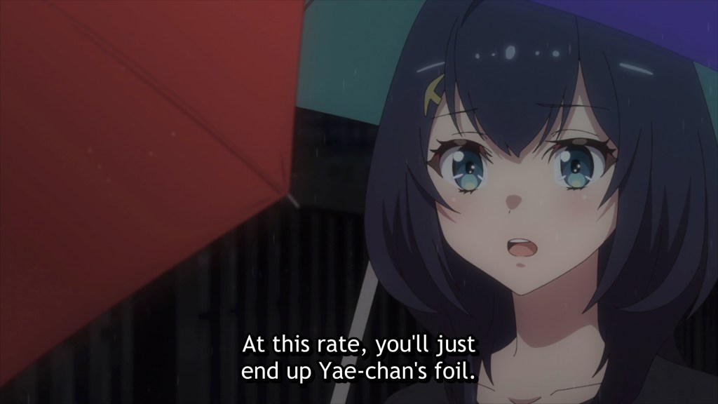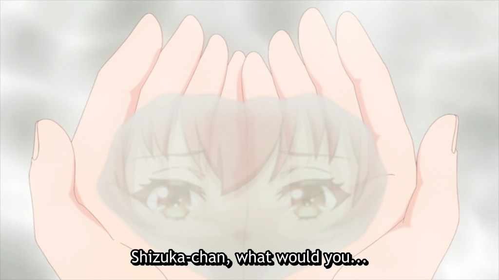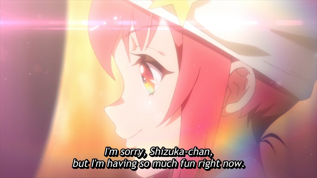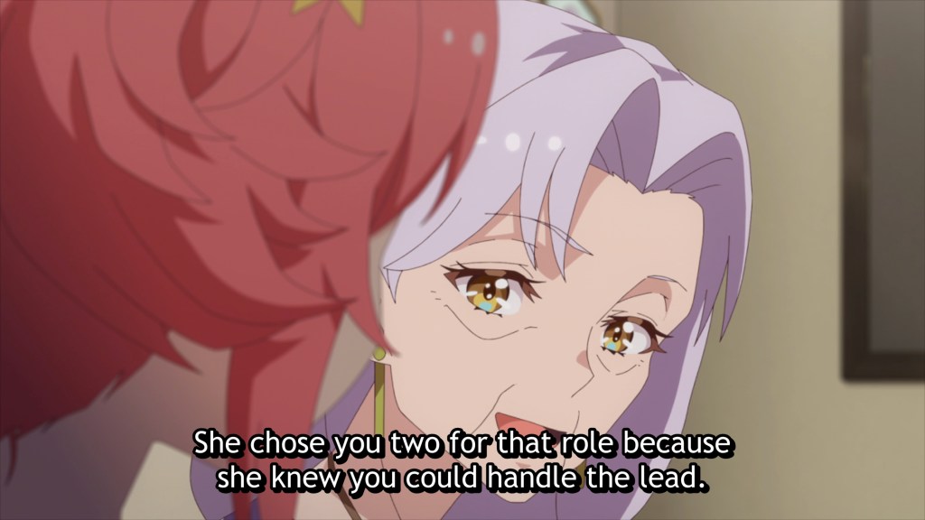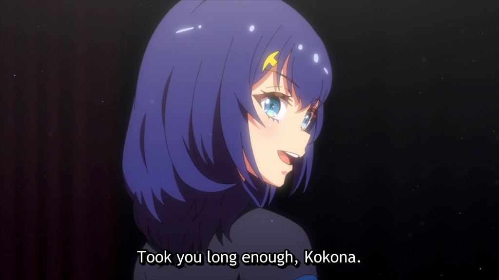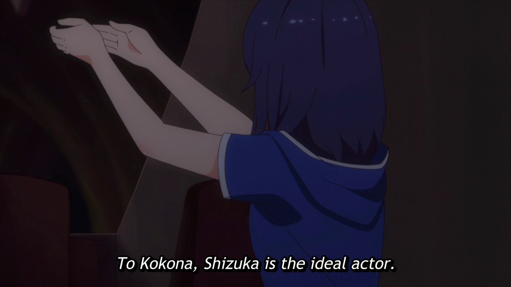 The worst thing is, Kokona does not even realize that she’s turned away from Shizuka, who now stands by the sidelines, her place at Kokona’s side usurped by Yae. Kokona doesn’t think to ask, “What would Shizuka do?”, being instead fully content with Yae’s direction. Even when her performance falls flat, show after show, and Shizuka confronts her, calling her out gently but firmly for compromising herself as an artist and settling for less when she was called to grow and lead, Kokona cannot see it. She’s lost sight of her dream and her purpose, and chooses instead to content herself with making Yae happy.
