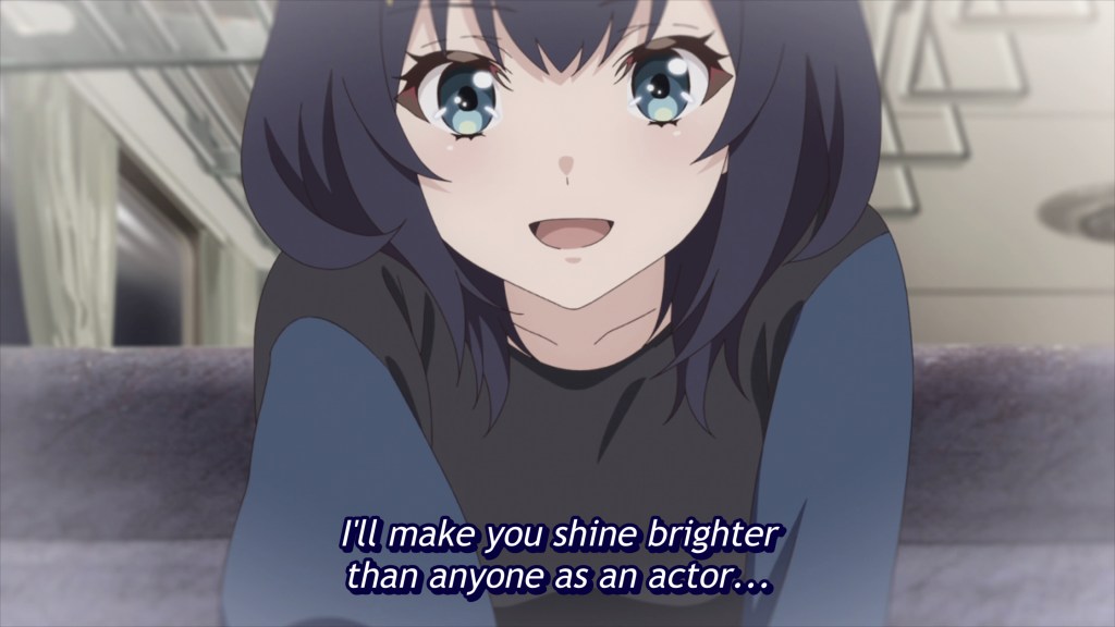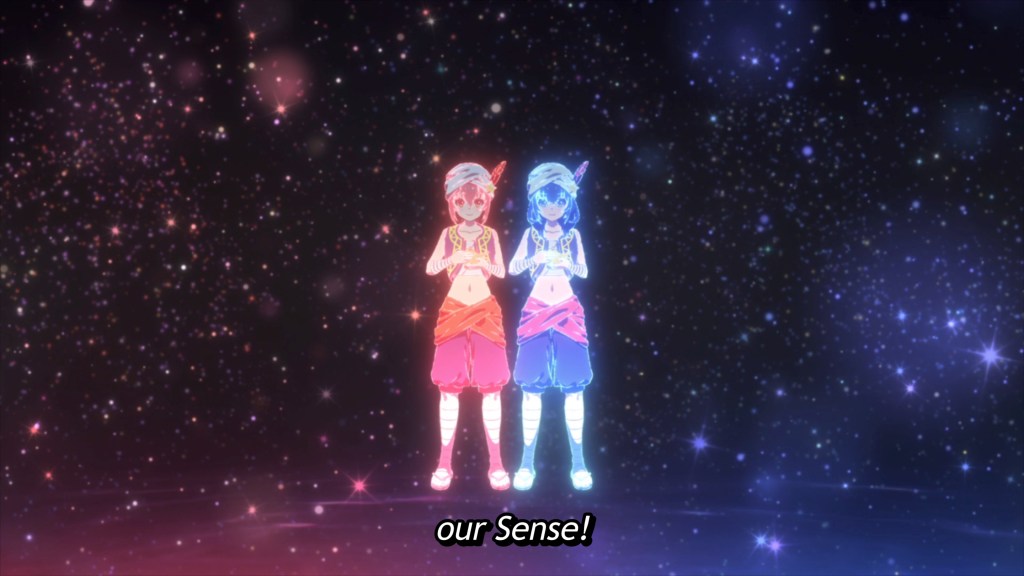 For the first four episodes, it is unclear who exactly Shizuka is, though two things are certain: she is Kokona’s best friend and no one else can see her. Kokona herself doesn’t even know exactly what she is; Shizuka is simply Shizuka, her acting coach, biggest fan, and closest confidante, all rolled into one. But one day, at a crucial moment, she becomes visible to others and the manager of the troupe recognizes that Shizuka is actually Kokona’s Sense—something she did not believe she had. What a paradigm shift!