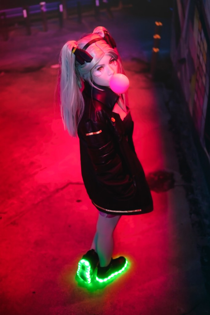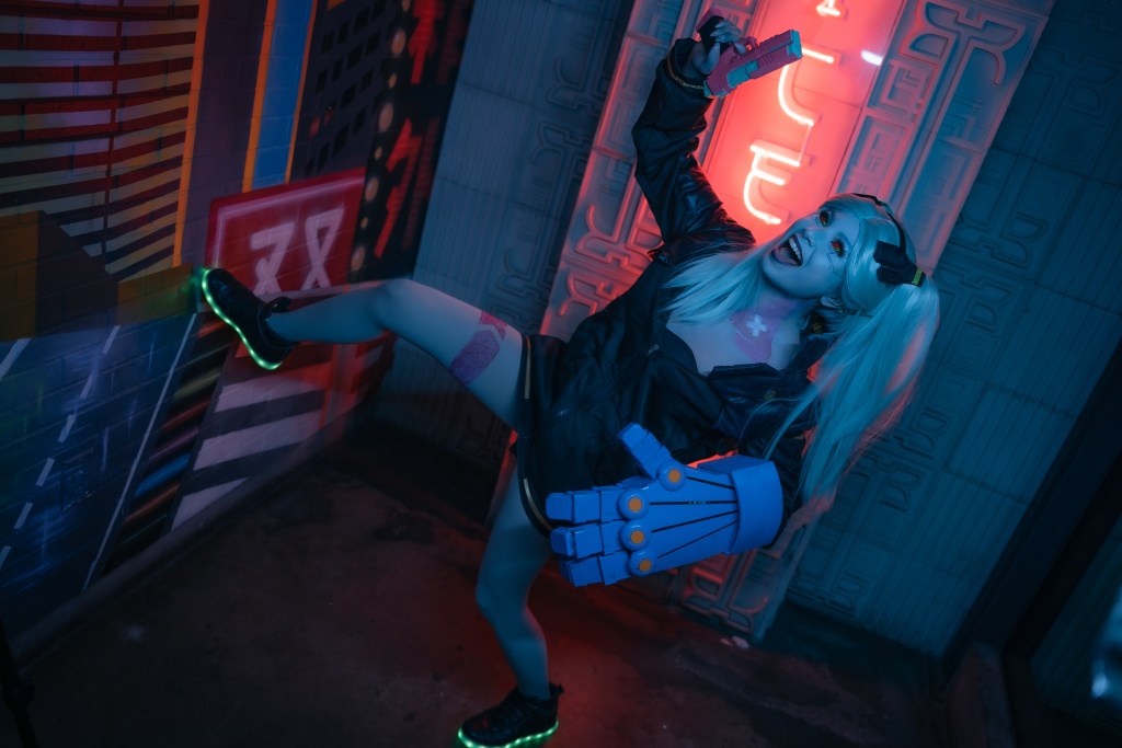 REBECCA!!! I loved cosplaying this spitfire! I wanted to try something different and she’s definitely out of character for me. While this Cyberpunk: Edgerunners shorty is not for the faint of heart and has a potty mouth for sure haha, that’s not all there is to her! There are a lot of things I love about Rebecca—her ride-or-die loyalty, her honesty, and the fact that she wears her heart on her sleeve.