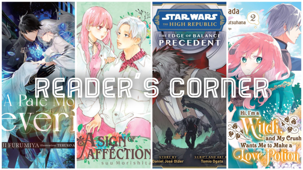 “Reader’s Corner” is our way of embracing the wonderful world of manga, light novels, and visual novels, creative works intimately related to anime but with a magic all their own. Each week, our writers provide their thoughts on the works they’re reading—both those recently released as we keep you informed of newly published works, and those older titles that you might find as magical (or in some cases, reprehensible) as we do.
