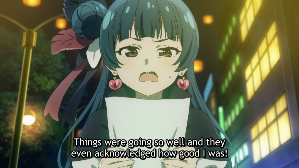 Yohane the Parhelion is an anime adaptation of an AU manga featuring the members of Aqours from Love Live!, and as such, it is full of fanservice nods to that group and the Love Live! Sunshine!! anime. It was fun reading up on Yohane and seeing all the connections, so I can only imagine how over the moon the die-hard fans will be for the show. But for someone like me, who only knows only the very basics about the franchise, episode one is a terrible entry point. In fact, I would describe it as an absolutely miserable watch in general. Yohane is obnoxious, the climactic music scene was meh, and most of all, the setting and theme for the series were super confusing: it’s an idol show, no it’s sci-fantasy, no its slice-of-life set in a modern world…or a steampunk world…or cyberpunk…or all of the above! And there’s mecha and magic, too? More like anime genre overload.